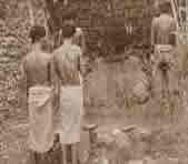 There is no ceremony in connection with pregnancy. However, birth pollution lasts for 15 days. They observe puberty ceremony known as thanni ootharuthu. The girl is secluded for 15 days. Marriage rituals are taken place in bride’s residence, which long for two days. The bridegroom with his relatives reaches the bride’s residence on the first day night. There will be music and dance on the day. After prayers, the bridegroom ties the thali known as Karukumai pasi (black beaded chain) around the neck of bride. The second night they again engaged in music and dance and before dawn, they left for bridegroom’s house. In the morning the marriage party again meets and exchange seven finger rings and with this rite, marriage functions will come to an end. The Hill Pulaya buries the dead. The eldest son is the chief mourner. A grave in the north south direction is dug and the body is lowered into the pit as the head turned to southwards. Death pollution lasts for 3 days.