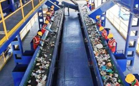(Photo : Workers of a factory sorting waste for re-cycling) |