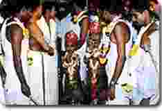 around their waist, takes out sword in hand, wear chilambu in legs and dance with divine sword in hand and announce the desire of the presiding deity.