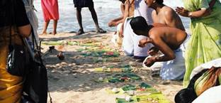 The new moon day in the month of Karkidakom (July-August) is the Karkidaka Vavu. This is famous for bali (paying homage) to the departed soul of ancestors. It is believed that the departed souls will attain Moksha (salvation) if bali is performed on this day. Karkidaka Vavu is the first Amavasi of Dakshinayanam. The first Amavasi of Utharayanam comes in the month of Makaram (January-February). The first is related to fathers and latter to Gods. Therefore, Karkidaka Vavu became famous for performing bali to ancestors. Thousands of people will throng on the riverbanks and beaches to offer holy prayers and bali for the departed souls of their fathers. In north Kerala, it