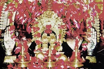 Deity: The pair of hands believed to have contained the divine spirit of Goddess Hemabmika is the deity. The concept of deity is Goddess Saraswathy in the morning, Goddess Lakshmy at noon and Goddess Durga at night. The idol of Nandi is also installed in the temple.